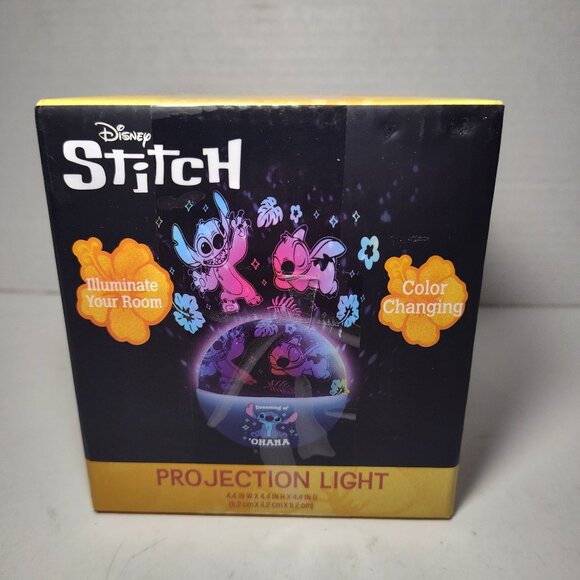 This listing is for a brand new, factory sealed Disney Stitch Projection Light. When powered on, it projects colorful Stitch images onto walls or ceilings, making it a fun night light or room décor piece for kids and Disney fans.