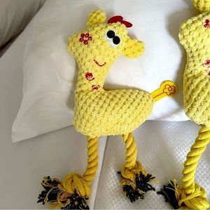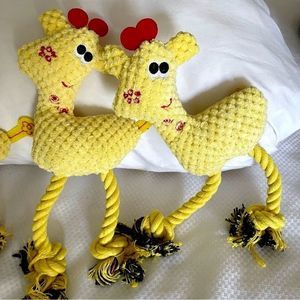 NEW SET OF 3 Large Yellow Giraffe Squeaker Rope Toys for Dogs — All One Size