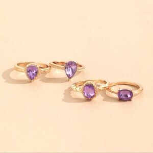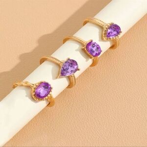 NEW Set of 4 Purple Stone In Rose Gold Tone Rings