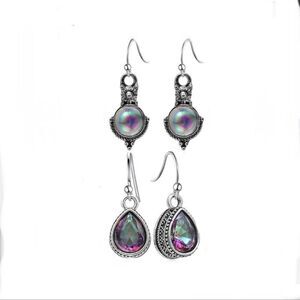 NEW Set of 2 Pairs of Iridescent Silver Earrings
