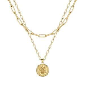 Medallion chain necklace adjusts to 16.5” - 19”.