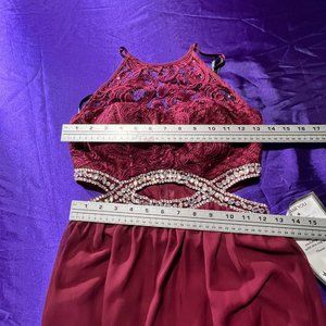 NEWπSexy Burgundy Infinity Beaded Cutout Sequin Lace Chiffon Prom Gown
