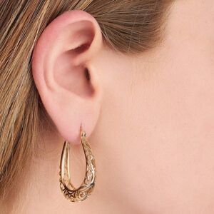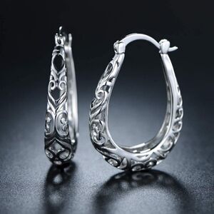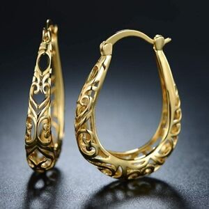 Beautiful 18k gold or white gold plated filigree hoop earrings.