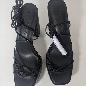 NEW-Size 11M Womens Gianni Bini Platform Block Heeled Sandals Leather Black