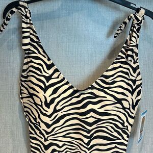 NEW Social Standard Sanctuary Tie Knot Strap One-Piece Swimsuit Sz Large Zebra P