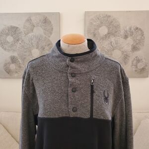 NEW! Spyder Color Block Midweight Fleece Pullover Jacket in Black/Gray