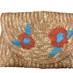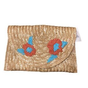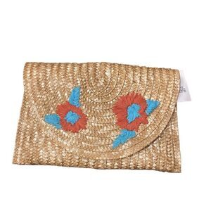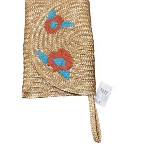 NEW Straw Floral Fold over Wristlet Clutch