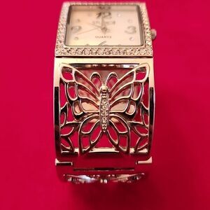 NEW NWOT Studio Time Silver Tone Quartz Butterfly Cuff Watch. STD2745. Stainless steel back. New Battery.