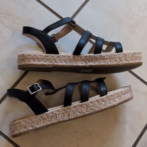 NEW Sun & Stone Rykerr Sandals Faux Leather Black Fisherman Espadrille 9.5