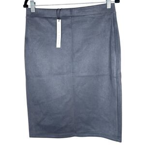 NEW Susana Monaco Silver Slim Midi Faux Suede Skirt Large