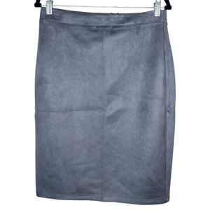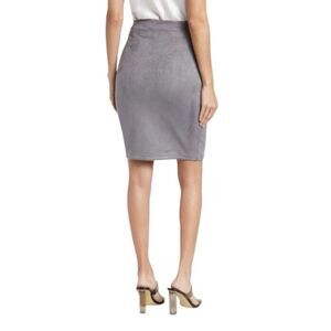 NEW Susana Monaco Silver Slim Midi Faux Suede Skirt XS