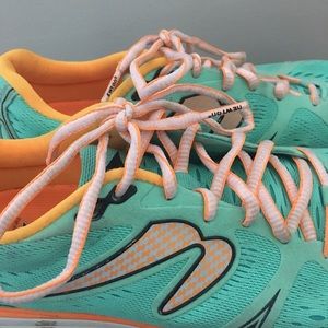 Bright mint and orange Newton running shoes. Great sprinting shoes. A bit dirty but I'll clean them before shipping :)