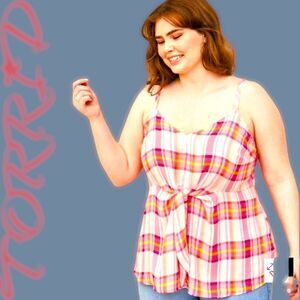 NEW TORRID Plus Size Pink Plaid Peplum Georgette Tie front Cami