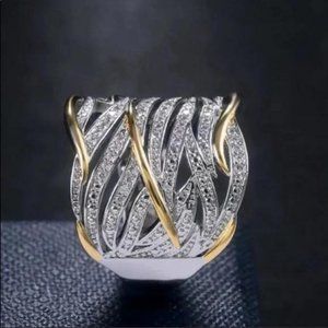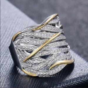 \\NEW\\TWO TONE 925 STERLING SILVER DIAMOND RING