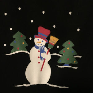 Black sleeveless maxi dress with brightly colored winter theme appliques. NWT A festive snowman adorns the center front of the dress. Small snowmen and trees follow all around the hem. Made of a soft knit fabric. NWOT Size M
