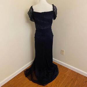 NEW Tadashi Shoji Navy Silk Beaded Maxi Formal Dress Size 8