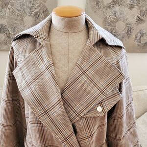 NEW Topshop Check Trench sz 4 in Tan/Light Blue