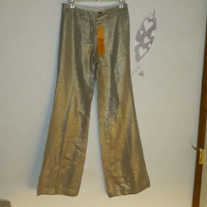 Brand new with tags attached Tory Burch Gold shimmering basketweave wide leg, mid rise pants. Zip and button closure. Gorgeous sheen to this fabric. Statement slacks, high fashion, lux