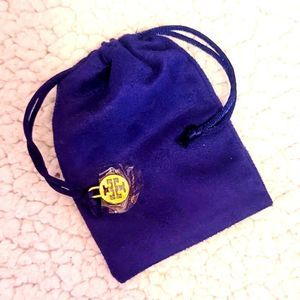 Beautiful and new, this Tory Burch drawstring bag has a gold logo charm, still covered in original wrap to protect the charm