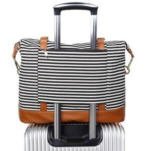 Canvas Weekender Bag Overnight Carry-on Tote Duffel in Trolley Handle (Black Stripe)