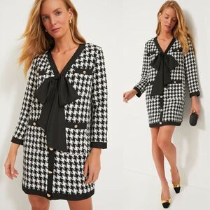 Tuckernuck Pomander Place Coco Tweed Bow Dress. Crafted from a luxe houndstooth tweed and complete with gold hammered buttons, this chic take on a timeless shirt dress will have you feeling and looking the part. Size XXL.