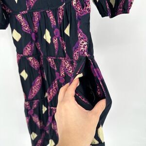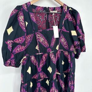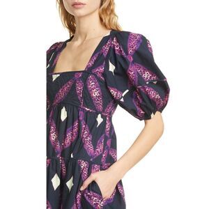NEW Ulla Johnson Nora Puff Sleeve Midi Dress in Black Purple. Size 4. Brand new with tags attached.