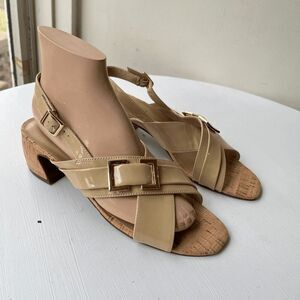 Spring-to-summer staple, neutral tone, cork heel for subtle texture contrast, and a high-shine finish that elevates any outfit. Retail: $150
