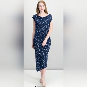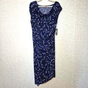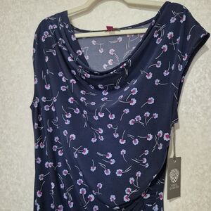 NEW..VINCE CAMUTO...Elegant Navy Blue Dress with Pink Accents..SIZE:L
