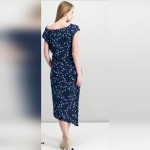 This elegant navy blue dress features delicate pink accents, perfect for any occasion. The stylish design offers a flattering fit and timeless appeal.