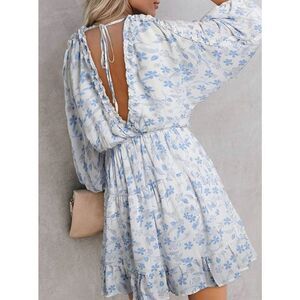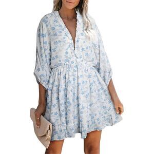 NEW V Neck Ruffle Chiffon Elegant Mini Short Swing Sun Dress M