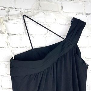 Brand new with tags. Never worn. Sexy one shoulder top with a a tie around neck. Pleated and ruched open neckline. Sleeveless.Wide Waistband at the hemline. Super stretchy. Forgiving silhouette. Versatile. Can be worn as mini with thigh high boots.