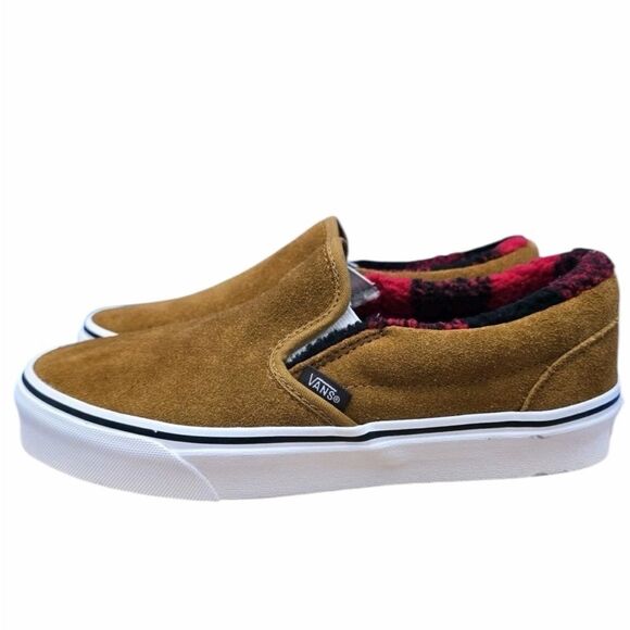 NEW Vans Classic Slip On Cozy Hug Women's 6.5 Brown Suede Sherpa Lined