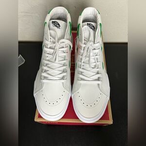 Stylish Vans high-top sneakers in white and green. Perfect for casual wear. These shoes are brand new come with the original box. I ship fast and carefully package. If you have any questions, please feel free to reach out to me.