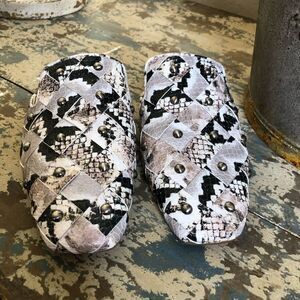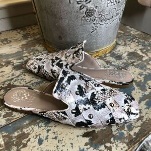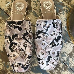 NEW Vince Camuto Lenja Faux Snakeskin Studded Mules NWOB