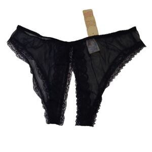 Deadstock Fredrick's of Hollywood 1970s crotchless sheer black panties underwear. Very sexy! Size is one size but measures like a S/M. Hard to find item new with tags. New old stock. Made in the USA. Nylon.