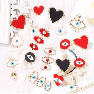 NEW! Vintage Gold Trim Enamel Evil Eye Stud Earrings