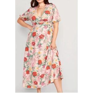 NEW WITHOUT TAGS Old Navy twist wrap linen dress SIZE Medium pink multicolored