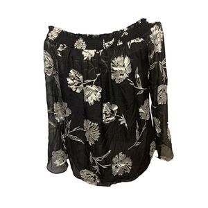 NEW WITHOUT TAGS WHITE HOUSE BLACK MARKET WHBM size medium SILK-BLEND BURNOUT OFF-THE-SHOULDER BLOUSE