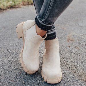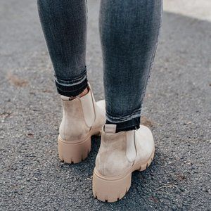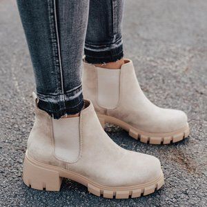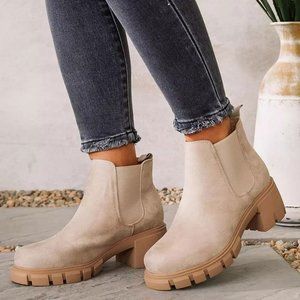 NEW🔥Wheat Slip-On Chelsea Booties Ankle Boot Lug Platform Low Chunky Block Heel