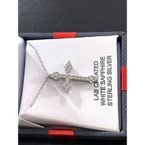 NEW White Sapphire 925 Sterling Silver 18” Chain with 1” Cross Pendant Necklace
