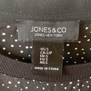 NEW White Dot Pullover Blouse By Jones & Co, Women’s Size Small, slight Hi-Lo, Shoulder To Front Hem 26”, Pit To Pit 20”, Cute Versatile Top, New Without Tag, Never Worn
