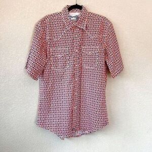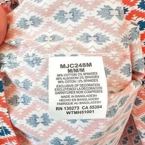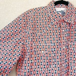 - Orange shirt with blue and white western, cowboy, rodeo, southwestern pattern