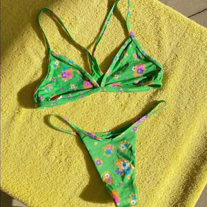 NEW! Y2K “90’s Vibes” Floral Print Skinny Strap Bikini Bottoms