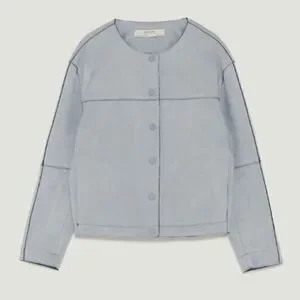 NEW ZARA Blue Suede Button Jacket