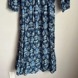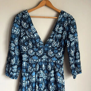 4 Sleeve with V-Neck Elastic at cuffs Smocking across back Tiered skirt Lined Inseam pockets Pullover stylet