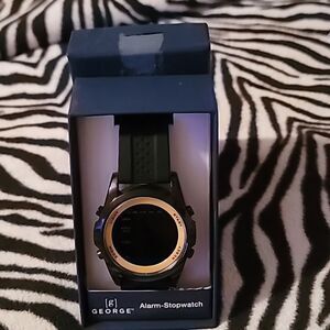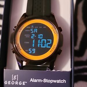 NEW in Box George [g] Alarm Stopwatch Wristwatch Rubber/Silicone Band Black Case