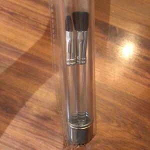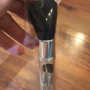 One large brush for a blush or powder, two smaller brushes for lips and eyes. Perfect travel set.
