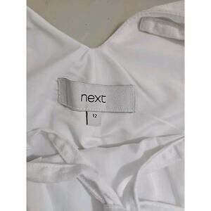 This beautiful white tunic dress from NEXT is perfect for any occasion. The dress features a scoop neckline with a tie closure, and strappy sleeveless design. The knee-length dress is made of a linen blend fabric, and is perfect for winter, summer, and spring seasons.