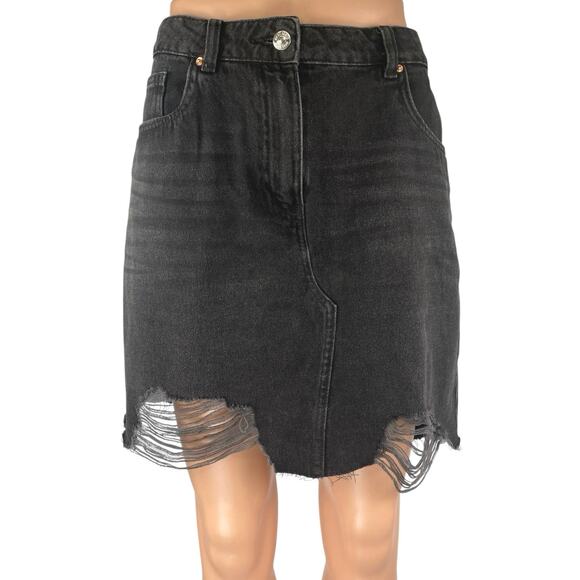 NEXT Women's Black High Waisted Distressed Cutoff Mini Denin Jean Skirt Size 10