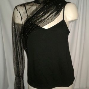 NEXT Women's Black Sheer Shimmer Blouse With Cami